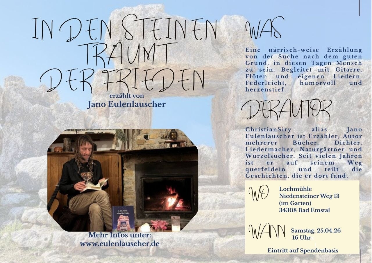 Mit Büchern, Märchen und Poesie zum Lesen und Hören, myth-ökologischen Naturführungen, Jahreskreisfesten und Erzählungen ums Lagerfeuer lade ich Menschen ein, den alten Pfad der lebendigen Erde neu zu entdecken.